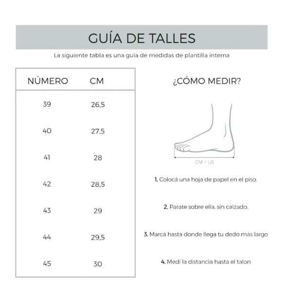 CAMBIOS Y DEVOLUCIÓN: En el caso de que el producto no sea lo que el comprador esperaba o que en la prueba del mismo no fuera el talle, o la horma del calzado no correspondiera al pie del comprador, dentro de las 72 horas hábiles de prueba, el CAMBIO o DEVOLUCIÓN será inmediato si cumple con los requisitos solicitados y el producto está en perfecto estado, sin rayones, marcas en el cuero, golpes, manchas, dobladuras, o una forma inadecuada al probarlo. Correspondiendo al estado que exhibe en las fotografías originales del vendedor. Conservando su perfecto estado original en el que fue enviado. Conservando su caja y accesorios según el caso correspondiente. Quedando claro que el calzado en caso de haber sido usado, no se atenderá su cambio o devolución.